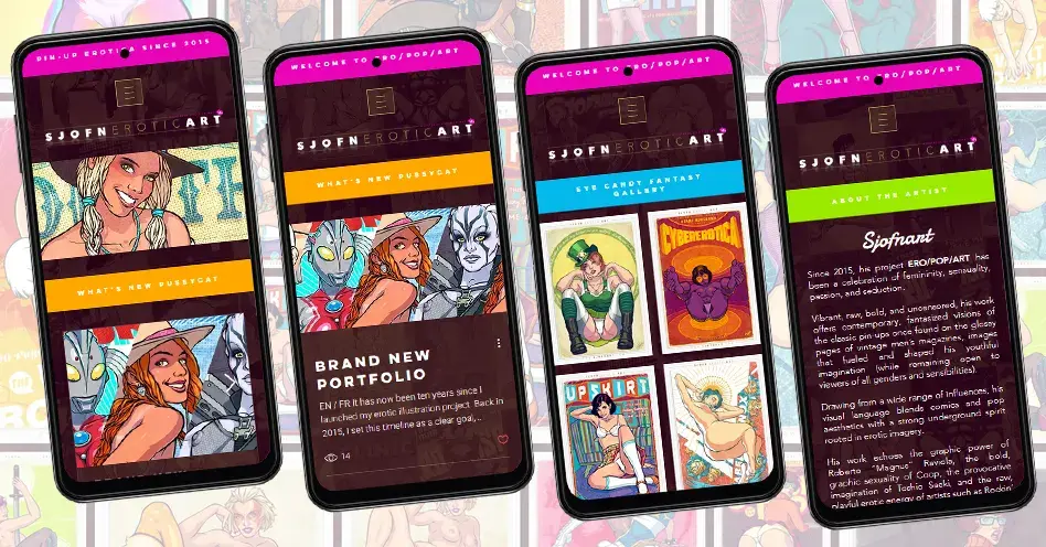 Pour fêter les 10 ans d’ERO/POP/ART, mon projet d’illustrations érotiques, j’ai fait une grosse mise à jour de mon site web sur ordinateur.